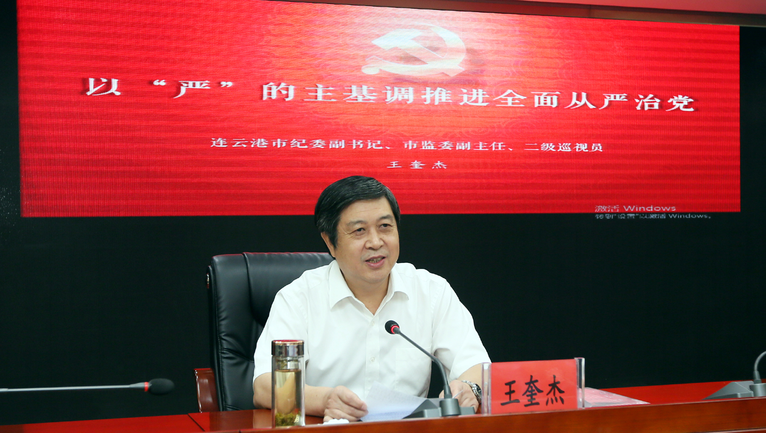 王奎杰圍繞“以‘嚴’的主基調推進全面從嚴治黨”主題,從深刻認識全面從嚴治黨的歷史性成就、準確把握全面從嚴治黨的形勢任務、以“嚴”的主基調推進全面從嚴治黨三個方面作了深入淺出的專題輔導報告。