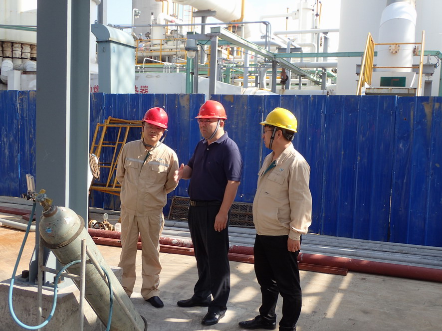 楊龍一行實(shí)地查看了氯堿公司氫氣純化技改項(xiàng)目、天然氣制氫壓縮機(jī)廠(chǎng)房現(xiàn)場(chǎng)和氨綸公司精制罐區(qū)、危廢庫(kù)等重點(diǎn)區(qū)域,就相關(guān)設(shè)備運(yùn)行、安全防范情況進(jìn)行詳細(xì)了解。楊龍強(qiáng)調(diào),新中國(guó)成立70周年即將到來(lái),要把安全工作當(dāng)成一項(xiàng)重要的政治任務(wù),認(rèn)真做好各個(gè)重點(diǎn)部位、關(guān)鍵裝置等環(huán)節(jié)的排查和治理,提高專(zhuān)業(yè)化水平,做到立行立改。要提高安全生產(chǎn)意識(shí),認(rèn)真落實(shí)好安全檢查、節(jié)假日應(yīng)急管理和值班制度,強(qiáng)化對(duì)設(shè)備的檢查維護(hù)和隱患整改,確保節(jié)日期間安全生產(chǎn)平穩(wěn)運(yùn)行。