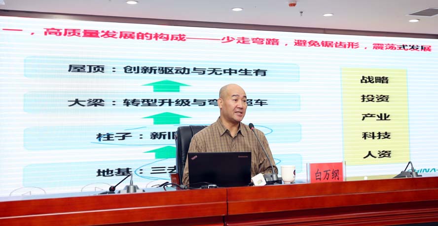 本次培訓班邀請上海華彩咨詢集團總裁白萬綱博士、副總裁江斐圍繞“高質(zhì)量發(fā)展導向下的企業(yè)改革與企業(yè)管理”、“新常態(tài)背景下的集團型企業(yè)的資本運作”作了專題輔導培訓。兩位專家學者結(jié)合工投集團實際,理論與實踐相結(jié)合,運用大量翔實的數(shù)據(jù)和實例,祥細闡述和解讀了在高質(zhì)量和新常態(tài)的發(fā)展大勢下,國有企業(yè)跨越發(fā)展與改革管理、資本運作三者之間的緊密聯(lián)系,主題鮮明、內(nèi)涵豐富,具有很強的針對性、前瞻性和指導性。
