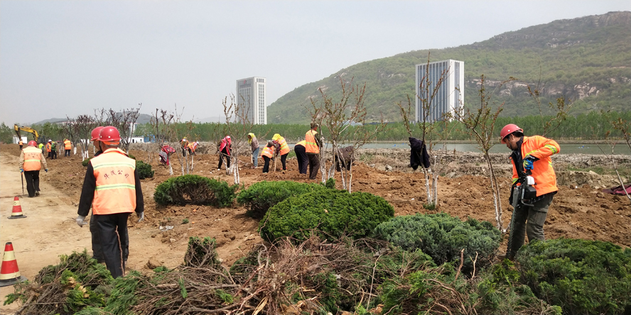 綠化工程施工緊鑼密鼓。公司承接的昌圩湖路移苗工程、242省道綠化恢復(fù)工程、江寧工業(yè)園242高速入口道路綠化補植工程、中科院環(huán)境提升改造工程等六項綠化工程,總價680多萬元,“五一”期間進入施工關(guān)鍵期,裕升、裕欣、裕祥養(yǎng)護公司和益豐園林公司的技術(shù)骨干、綠化工人放棄假日休息,持續(xù)投入到緊張有序的施工之中,瑞泰服務(wù)公司、盛達市政公司水車、挖掘機、運輸車等機械車輛緊密配合綠化工程施工,起苗、運苗、上土、栽苗、搭架、澆水等環(huán)節(jié)緊扣,每一個作業(yè)現(xiàn)場都是一幅人頭攢動、車來人往的忙碌勞動畫面。