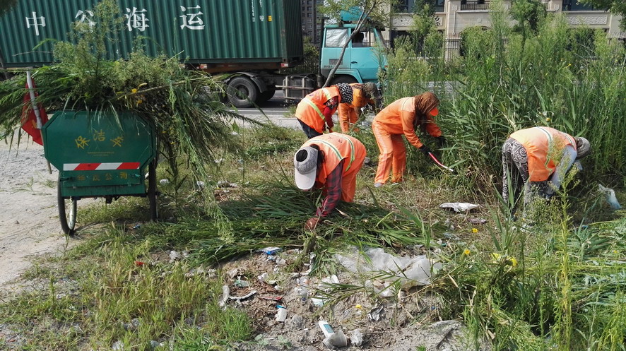 在昌圩湖環湖路南側一處公共廁所處,裕升養護公司20多名環衛保潔工人正在清理公廁周邊的雜草、建筑垃圾,有的在割草、有的在搬磚、有的在推車,一個個汗流浹背,忙得不亦樂乎。正在現場忙碌的保潔大隊長劉保軍對筆者說:“這一塊段還沒有交給我們養護,一直無人管理,雜草叢生,成為建筑、裝修垃圾的堆放地,根據開發區創衛環境衛生無死角要求和華茂公司生產技術部門指令,我們裕升養護公司承擔這一區域環境衛生突擊整治任務,從綠化保潔班組抽調20多人來搞突擊,大家面對天氣炎熱、工作量大、清理困難等因素,發揚不怕吃苦、敢打硬仗的華茂精神,奮戰在突擊現場,每個人都汗流不止,工作服全被汗水浸透,昨天我們已在這里整整干了一天,由于垃圾量大、雜草面積大,我們動用了裝載機等機械設備,運雜草的三輪車跑近百趟,清理建筑、裝修等垃圾數十噸。估計今天下午能夠全部結束?!?/span>