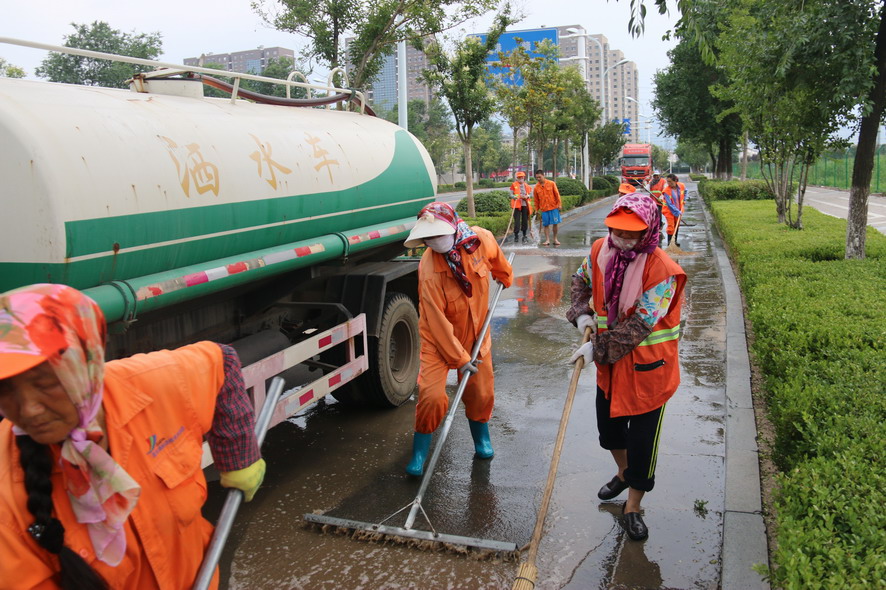 8月19日在火車站廣場及周邊路段,40多名綠化、保潔工人及灑水車、清掃車等全力保障火車站重點地段的環境衛生,為過往旅客提供一個干凈整潔舒心的出行環境。據現場負責人龔本國介紹,隨著創衛工作力度的進一步加大,開發區對我們火車站廣場及周邊路段的環境衛生提出了更高的要求,我們對會泉路商戶門前的綠化進行了補植,種植紅葉石楠等苗木600多平方,每天專門安排一輛灑水車對火車站廣場及周邊路段進行巡回清洗清掃,確保路面干凈無塵土,對廣場站臺、護欄、果皮箱、路燈桿、花壇進行清理擦洗,對下水道進行清掏,蓋板更換維修。為確保創衛工作任務高標準高質量完成,連日來,綠化養護、環衛保潔工人天天早上6點上班,到晚上10點下班,中午吃飯休息只有一個小時,每天工作10多個小時,為創衛工作做了很多實實在在的事情,他們真的很不易,很辛苦,只因有了他們的辛勤勞動、無私奉獻,城市環境衛生才會越來越好。