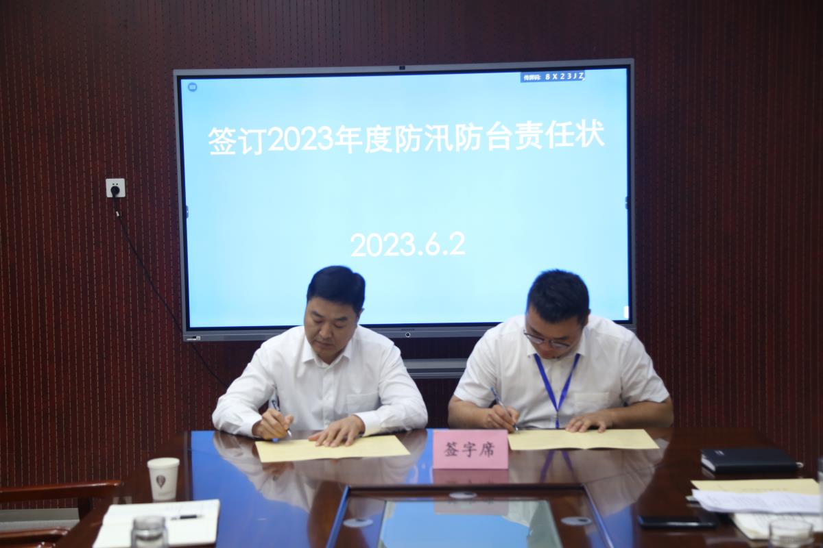 會上,各單位、項目部、園區(qū)簽訂了《2023年度防汛防臺責(zé)任狀》。