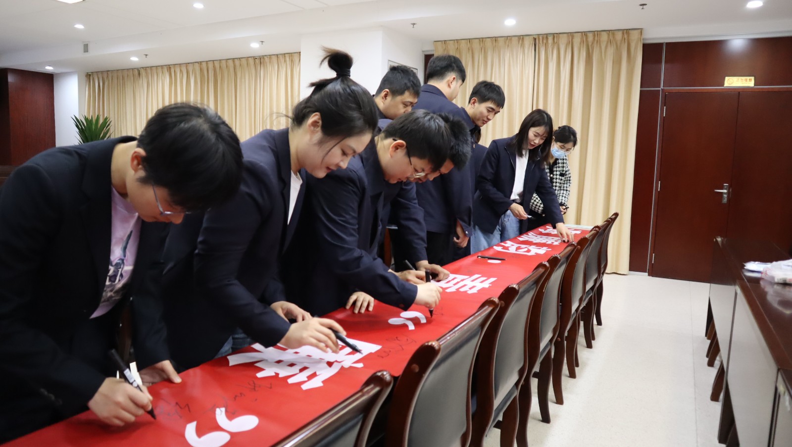 會上,九零后年輕管理人員參加廉潔從業宣誓并簽訂個人廉潔承諾書。(王雨)