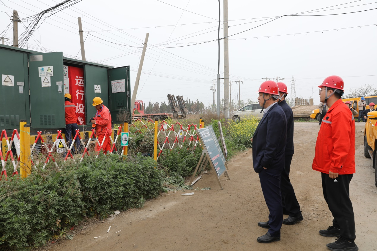 4月20日上午,公司黨委書記、總經理宋晟曄,黨委副書記、工會主席李平一行到徐南供電所斷電施工現場進行調研指導,徐南供電所所長周國成陪同調研。