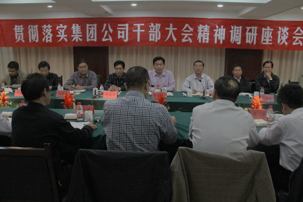 10月17日下午,集團公司在淮鹽大酒店召開貫徹落實干部大會精神調(diào)研座談會,供電公司、供銷公司、航運公司、雙菱集團、房地產(chǎn)公司等直屬單位主要負責人及其分管經(jīng)營負責人和總部相關部門負責人參加座談。集團公司董事長、黨委書記顧永庚;總經(jīng)理胡建明;黨委副書記、紀委書記鄭宜虎;副總經(jīng)理楊國新等領導出席了會議。顧永庚董事長作了重要講話,對管理體制機制的變革以及相關工作提出了指導性思路和要求。