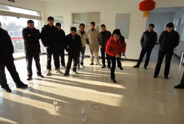 該所分三個場地,交錯開展三項活動。摜蛋共分四輪,你追我趕,爭奪最為激烈;套圈和投籃相對輕松,時常爆出陣陣笑聲。通過爭奪。通過活動的開展,營造了節日氛圍,提高了員工的團隊意識。(孫維兵)