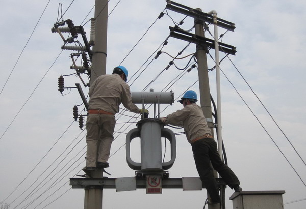 圖為該所職工在黃下線養(yǎng)殖場公變進行檢修 近期,青口供電所在公司抽調(diào)精兵強將以決戰(zhàn)利海110KV變電站工程、所里人力十分緊張的情況下,合理進行人力調(diào)配,組織職工加班加點,對供電設(shè)備全面進行檢修,確保秋冬季節(jié)設(shè)備安全供電。(宋中文)