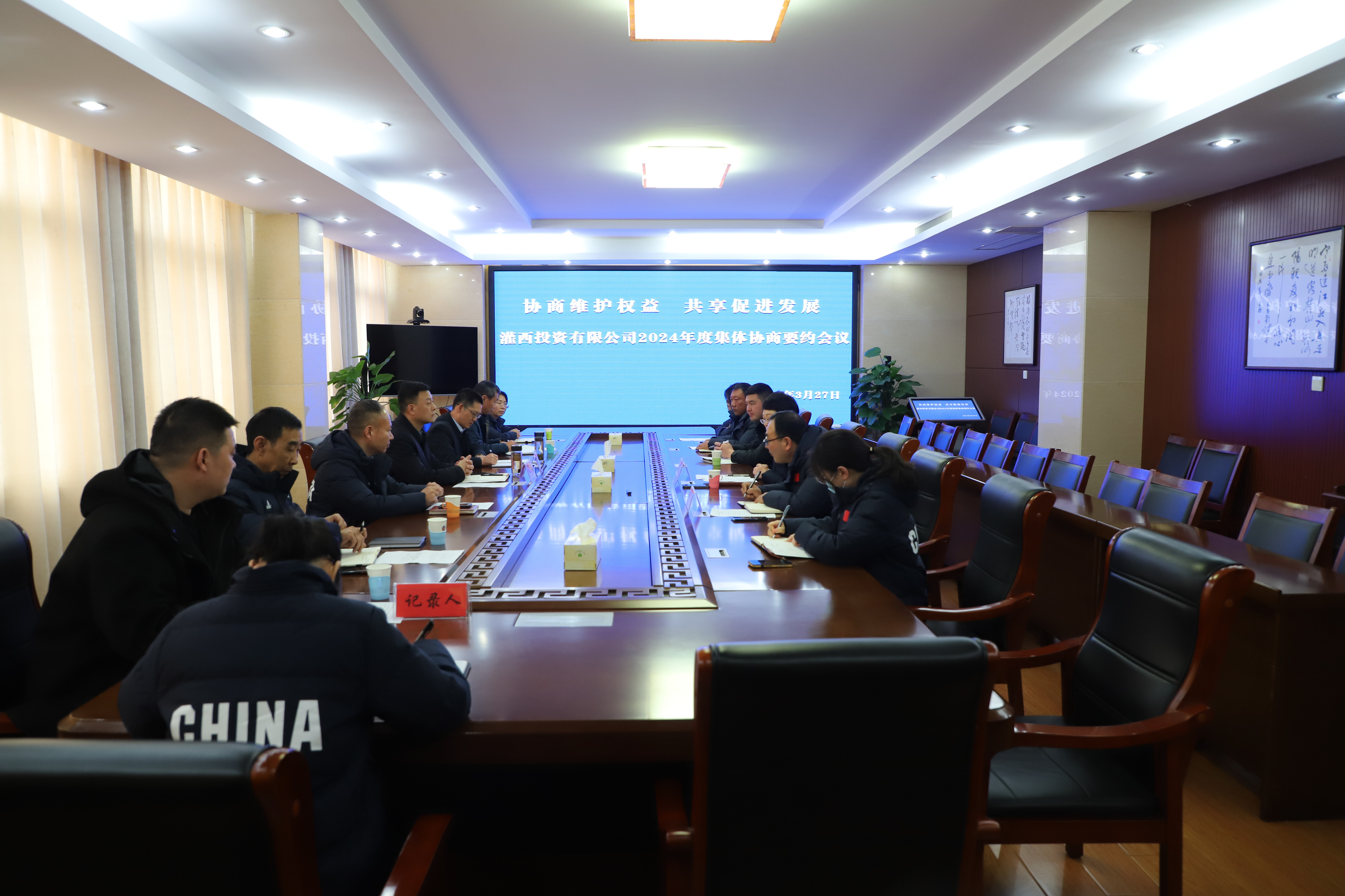 “2023年,兩大公司實現營業收入3.21億元,利潤8563.59萬元,為讓職工與公司共享發展成果,我方建議2024年職工工資增漲比例為8%-10%”“我們承諾,灌西職工的工資增漲比例將走在集團前列”.....來自心底最真實的掌聲在灌西投資公司集體協商要約會上頻頻響起。