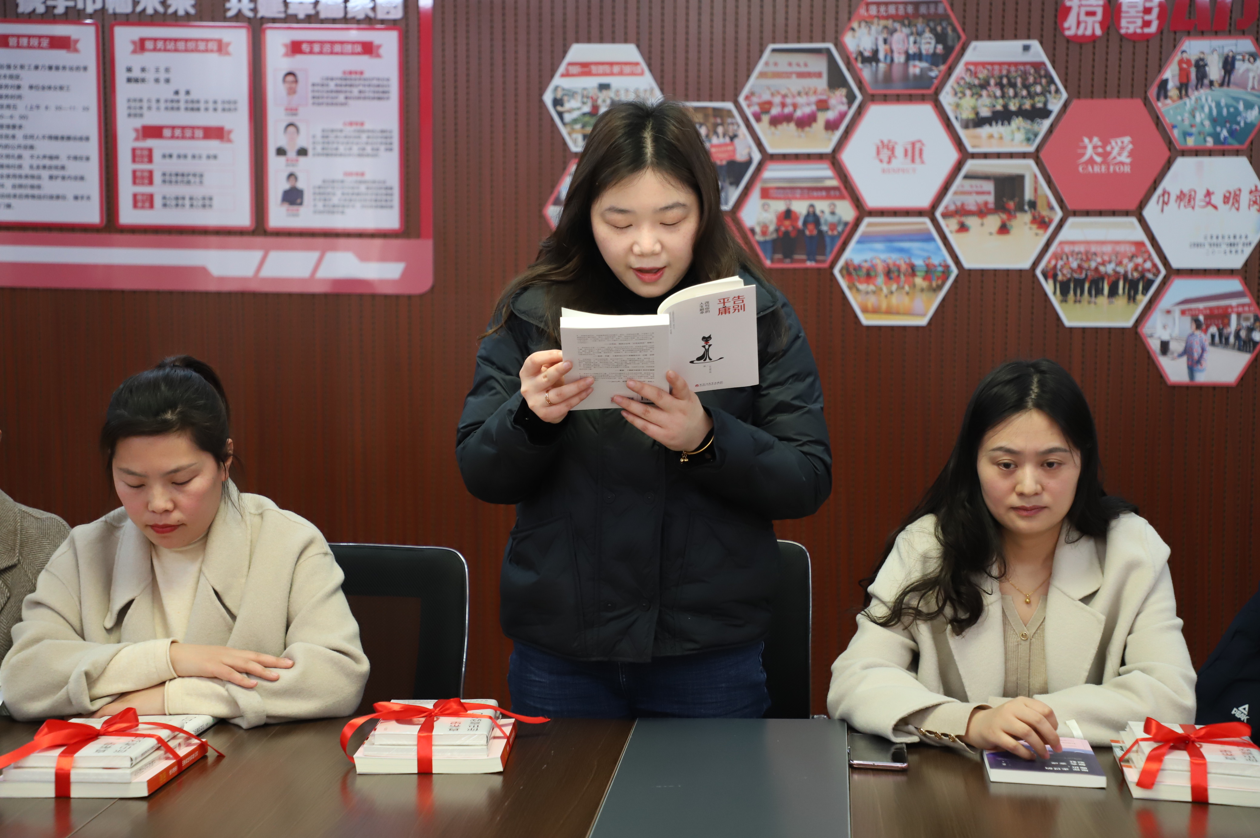 來吧,來吧,相約三八。相約在春光明媚的三月里,相約在閱讀分享的文韻里,相約在康乃馨服務站里......。3月7日下午14:00,公司工會開展的“巾幗心向黨”主題書分享會在女職工朗朗的誦讀中拉開帷幕。來自公司各條戰線上的女職工教育、文學、哲學、健康等方面內容進一步抒發家國情懷,弘揚時代精神,給我們帶來一場聽覺盛宴。塑造知識型的“她”,并為女職工贈送有關紅色主題、女性勵志等方面的書籍,在廣大婦女中營造“好讀書、讀好書、讀書好”的良好氛圍促進家庭文明、社會和諧