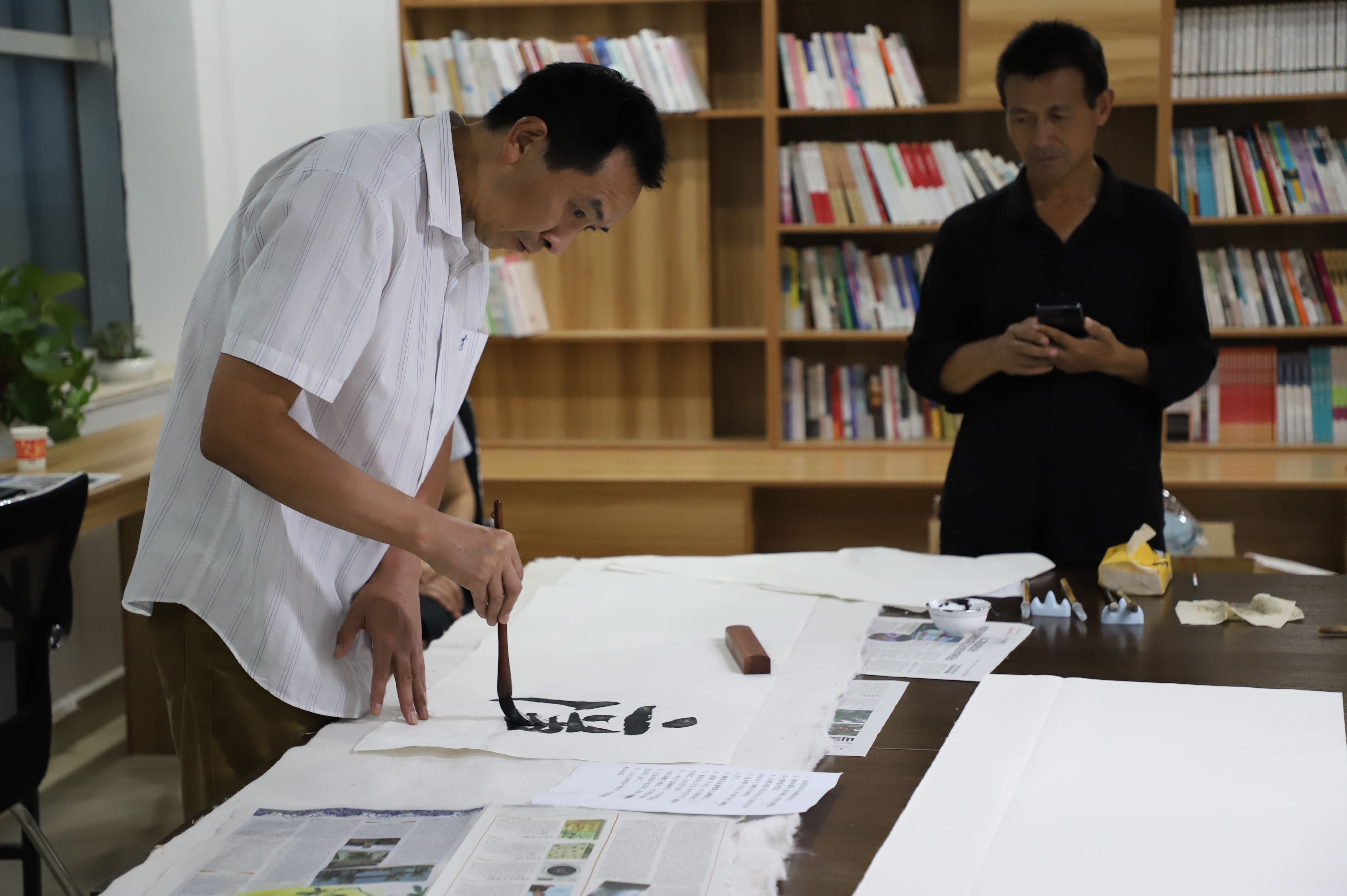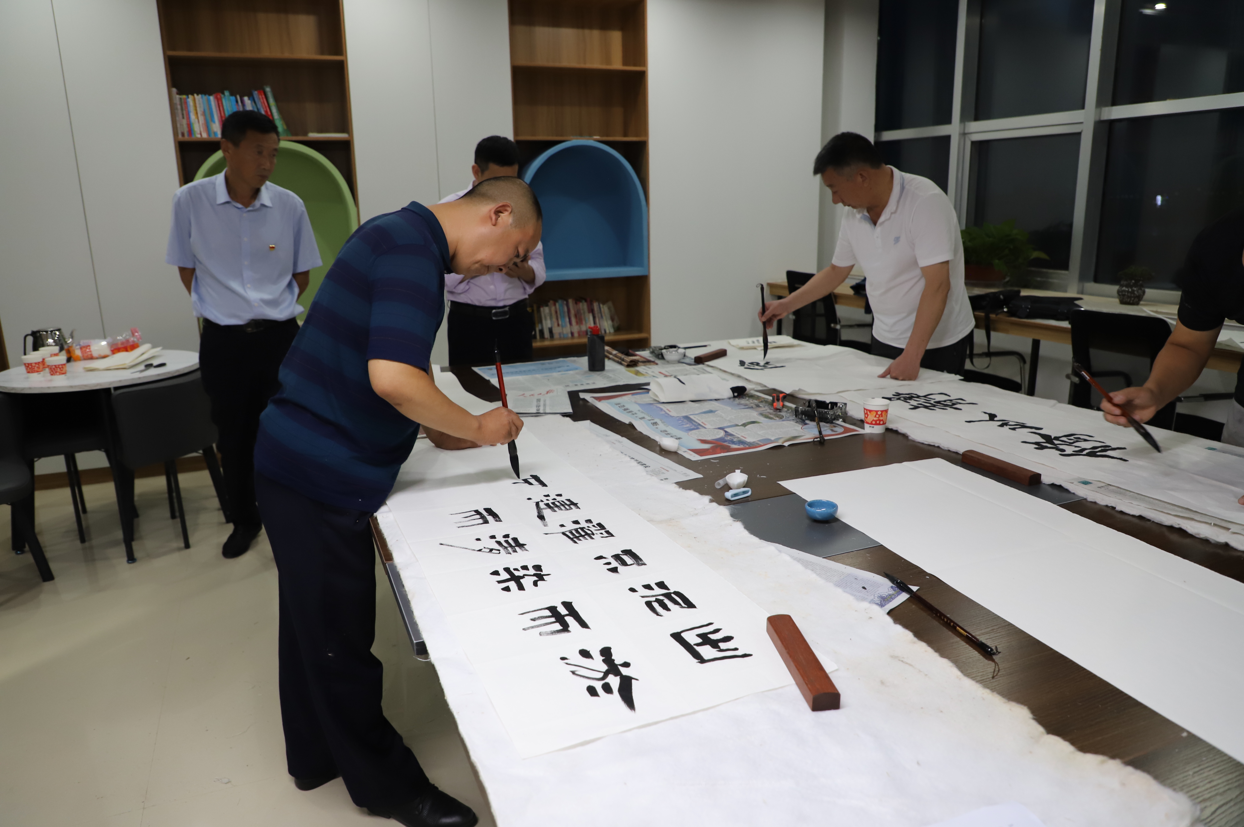 書畫筆會邀請縣書畫家協會的6名成員到場潑墨揮毫,以圍繞“迎國慶慶祝建黨百年”為主題,書寫愛黨華章,歌頌黨的百年光輝歷程,著力引導黨員干部“守初心、踐使命”。