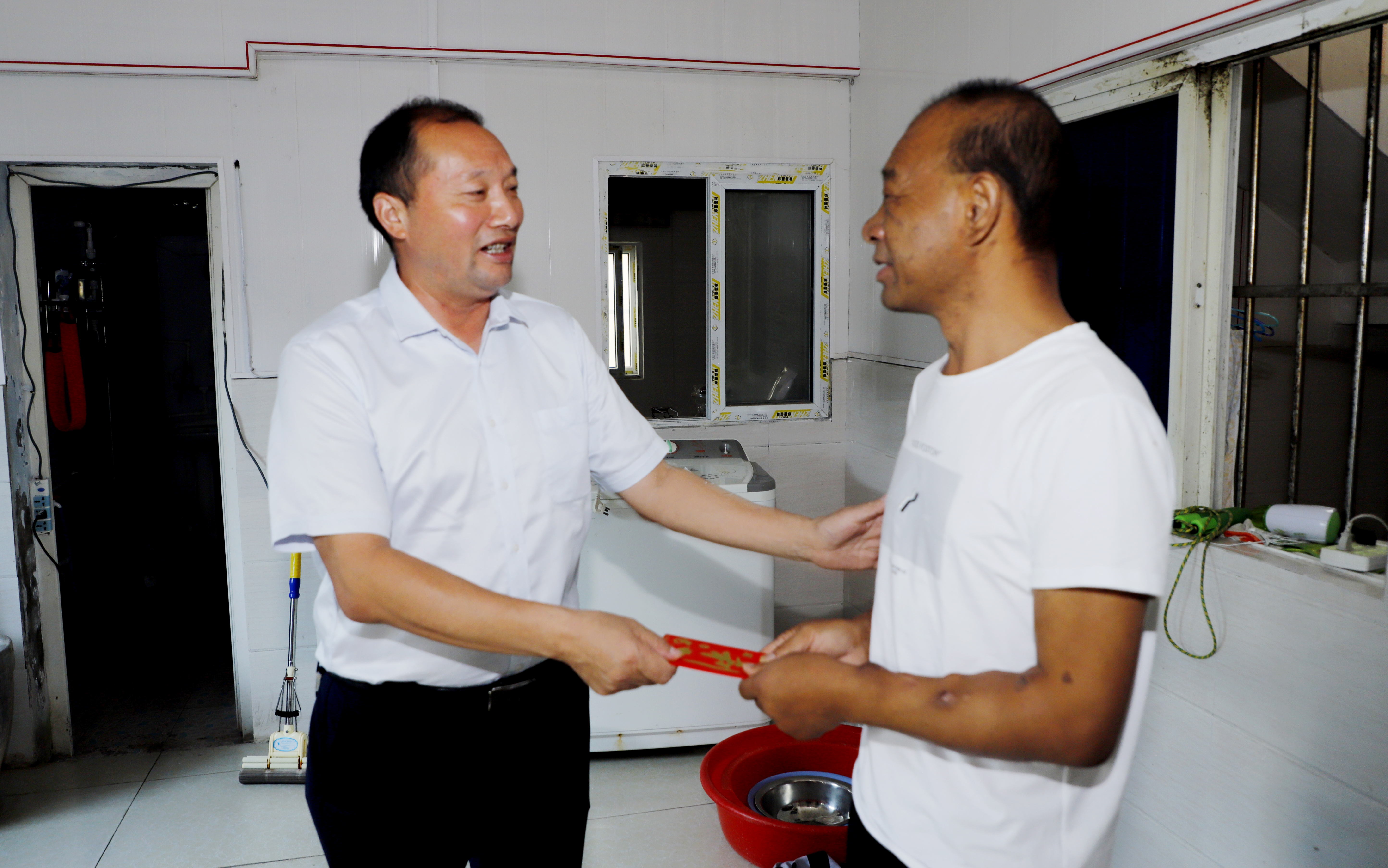走訪慰問中,公司領導班子成員與社區困難群眾面對面、心貼心地進行談心交流,了解他們目前的身體狀況、生活狀況及存在困難,叮囑他們保重身體,同時鼓勵他們要對生活充滿信心,并為他們送上慰問金。