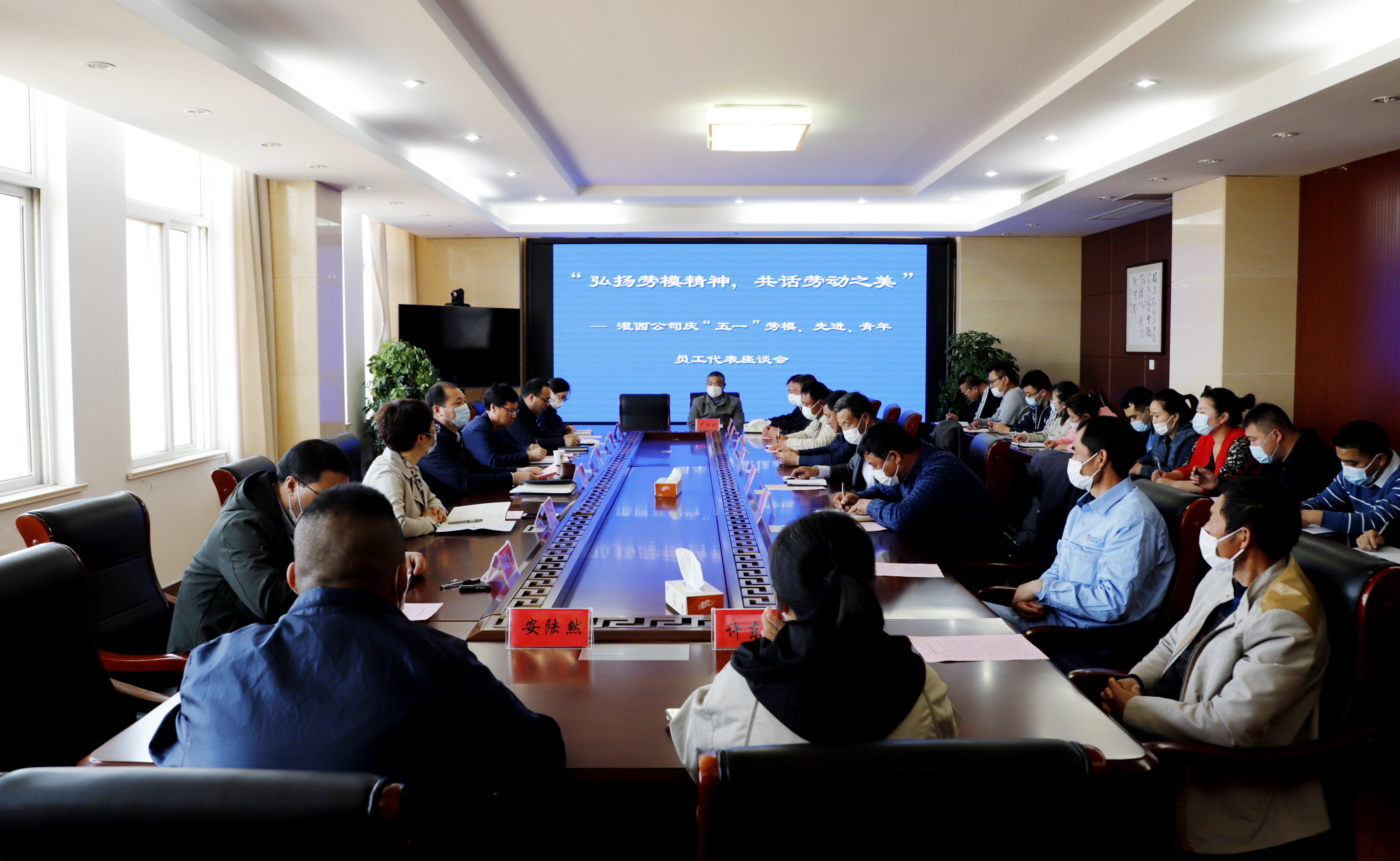 為慶祝“五一”國際勞動節(jié),進(jìn)一步弘揚(yáng)勞模精神和勞動精神,為公司的高質(zhì)量發(fā)展提供精神動力。4月29日下午,灌西公司在機(jī)關(guān)三樓會議室召開慶“五一”勞模座談會。黨委書記、董事長、總經(jīng)理李國文,常務(wù)副總經(jīng)理古浩光,黨委副書記、紀(jì)委書記、工會主席王宏以及來自公司各條戰(zhàn)線的勞動模范、先進(jìn)、青年員工代表40余人參加座談會。
