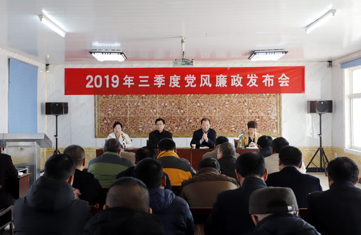 會上,發布了2019年三季度黨風廉政建設情況,通報了公司在三季度大宗物資采購、海淡水養殖池塘承包費收繳、工程項目建設、業務招待費用使用、人力資源管理、民生實事等方面的情況。