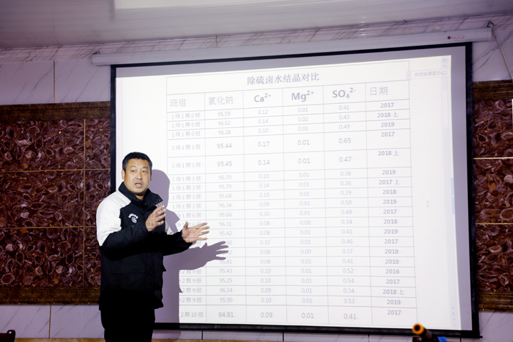 為進(jìn)一步提高日曬制鹽公司原鹽生產(chǎn)質(zhì)量,通過一年來的新鹵與老鹵長鹽數(shù)據(jù)對比,使用全新鹵水長鹽氯化鈉含量明顯提高,硫酸根離子、鈣離子也有所下降,使得分區(qū)曬鹽提高鹽質(zhì)提供了數(shù)據(jù)依據(jù)。此次培訓(xùn),深入講解了分區(qū)供鹵、老鹵區(qū)分、混合鹵水的分池結(jié)晶實(shí)施辦法以及在雨天收集淋板水,提高利用窮制鹵的途徑。培訓(xùn)中,圍繞礦鹵日曬制鹽技術(shù)及除硫工藝兩個(gè)方面,重點(diǎn)對鹽質(zhì)的管控、除硫的目的、意義、工藝流程等方面內(nèi)容進(jìn)行了講解,使參訓(xùn)人員特別是一線班組長對鹽質(zhì)和除硫工作的重要性有了更深刻的認(rèn)識,同時(shí)也為鹽質(zhì)鹽量的提升奠定了理論基礎(chǔ)。(張明建)