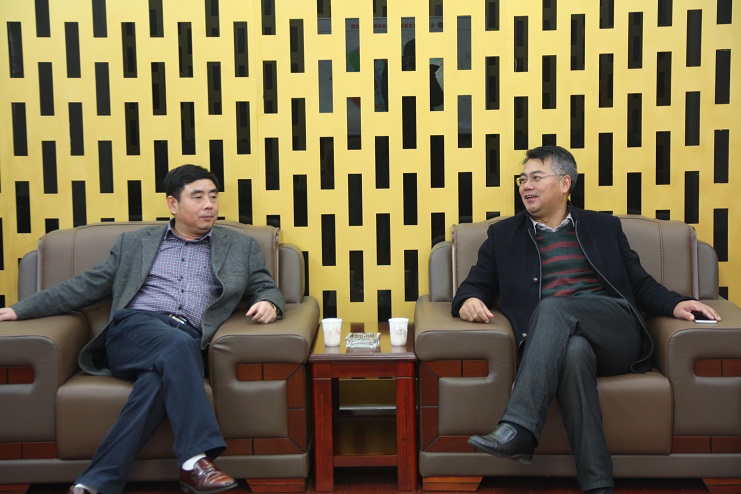 12月26日下午,江蘇瑞泰鹽業公司董事長王富山一行來我公司座談交流,公司董事長王德志、副總經理張學峰陪同座談。