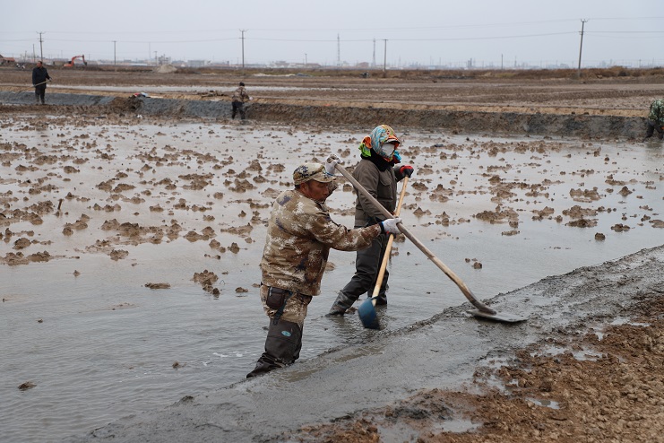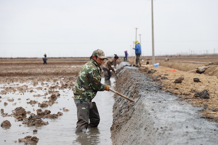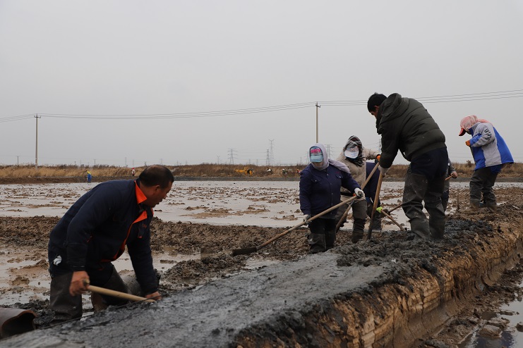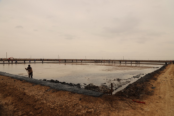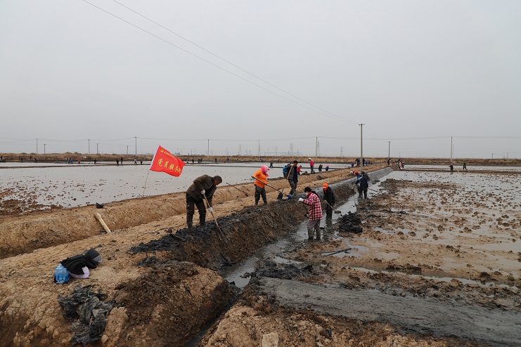 11月29日上午,雖然天氣寒冷,但是在海鹽基地新改造的制鹵灘上,卻到處是一派火熱的勞動(dòng)景象,參加“大會(huì)戰(zhàn)”的工人多達(dá)100余人,只見他們有的潑水,有的鏟泥,有的撈溝,有的做埝,大家分工協(xié)作。據(jù)了解,為了提高海水制鹵能力,確保海鹽產(chǎn)量,今年公司專門對海鹽基地部分廢棄灘地進(jìn)行了改造,以進(jìn)一步增加制鹵面積。近期,隨著改造工程接近尾聲,公司又組織精干力量對新改造灘地繼續(xù)進(jìn)行修整,以確保新建的制鹵灘地能夠盡快投入使用,為明年海鹽生產(chǎn)工作的正常有序開展奠定扎實(shí)的基礎(chǔ)。