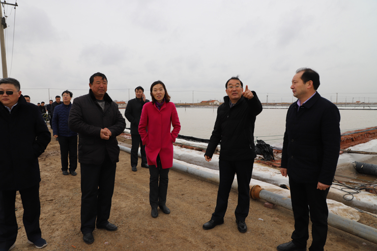 胡建明總經(jīng)理一行分別到原鈣液復(fù)曬區(qū)養(yǎng)殖池塘改造施工現(xiàn)場(chǎng)和新河制鹽分公司五班的扒鹽現(xiàn)場(chǎng)進(jìn)行實(shí)地調(diào)研,詳細(xì)了解工程的施工情況和日曬制鹽公司的生產(chǎn)情況。在原鈣液復(fù)曬區(qū),只見(jiàn)彩旗招展,幾臺(tái)挖掘機(jī)正在緊張施工之中,對(duì)灘地進(jìn)行養(yǎng)殖池塘改造,工程施工人員搶時(shí)間,抓進(jìn)度,爭(zhēng)取在養(yǎng)殖旺季來(lái)臨之時(shí),完成工程施工投入養(yǎng)殖生產(chǎn)。日曬制鹽公司目前已經(jīng)出動(dòng)五臺(tái)扒鹽機(jī)組投入到春季扒鹽工作中來(lái),預(yù)計(jì)上半年將完成25萬(wàn)噸的扒鹽任務(wù)。隨后在機(jī)關(guān)三樓會(huì)議室召開(kāi)流動(dòng)辦公會(huì),投資公司董事長(zhǎng)李國(guó)文對(duì)灌西投資公司和日曬制鹽公司的生產(chǎn)經(jīng)營(yíng)情況進(jìn)行了匯報(bào)。他表示,2018年,灌西投資公司將積極迎接挑戰(zhàn),以“三超兩增一確保”為工作目標(biāo),產(chǎn)鹽58萬(wàn)噸,實(shí)現(xiàn)綜合利潤(rùn)翻一番工作任務(wù)而努力奮斗。同時(shí)也提出,公司當(dāng)前面臨原料礦鹵要漲價(jià)、原鹽一線(xiàn)員工年齡老化、職工小區(qū)房產(chǎn)證協(xié)調(diào)辦理等諸多發(fā)展難題,希望集團(tuán)公司領(lǐng)導(dǎo)給予高度重視。集團(tuán)公司領(lǐng)導(dǎo)相繼發(fā)言,現(xiàn)場(chǎng)辦公,針對(duì)各類(lèi)問(wèn)題分別進(jìn)行了研討,提出建議,解決問(wèn)題。
