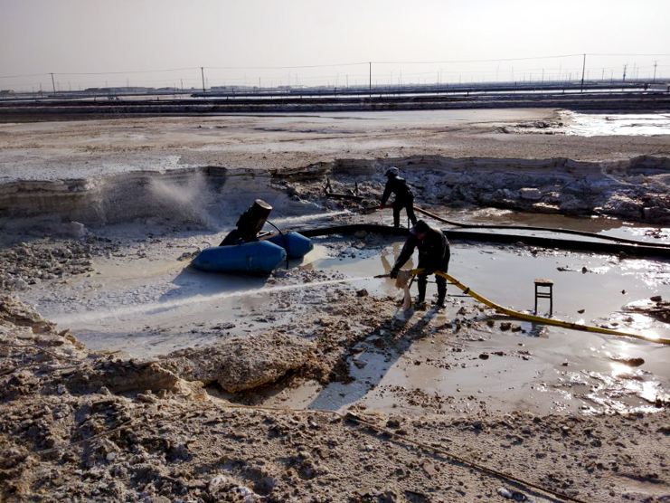 來(lái)到埒南制鹽分公司6班硫酸鈣清理現(xiàn)場(chǎng),只見水槍里射出的水柱把硫酸鈣廢渣沖的四處飛濺,伴隨機(jī)器轟鳴聲硫酸鈣廢液被送出灘外,工友們穿好雨衣,戴好頭盔,手握水槍,一站就是3、4個(gè)小時(shí),他們兩人一組,輪番作業(yè),確保息人不息機(jī)。班長(zhǎng)胡繼華信誓旦旦的說(shuō)我們要發(fā)揚(yáng)一不怕苦,二不怕累的革命精神,發(fā)揚(yáng)“有條件要上,沒(méi)有條件創(chuàng)造條件也要上”的大慶精神,寧愿多加班,少睡覺(jué)也要按期保證完成硫酸鈣清理工作。