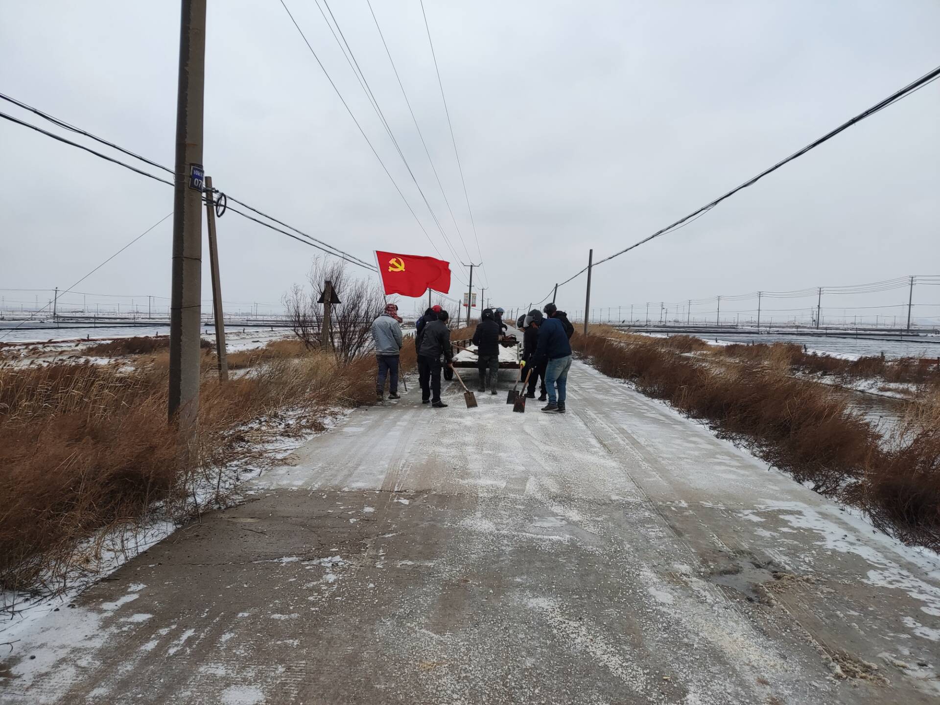 為了確保職工的安全出行,埒南制鹽分公司黨支部的全體黨員帶著鐵鍬、融雪劑,早早地來到現場,開始了緊張而有序的除冰工作。他們不畏嚴寒,奮力鏟除路面的冰雪,讓道路重新變得暢通無阻,確保職工上下班“路路暢通”。(王石)