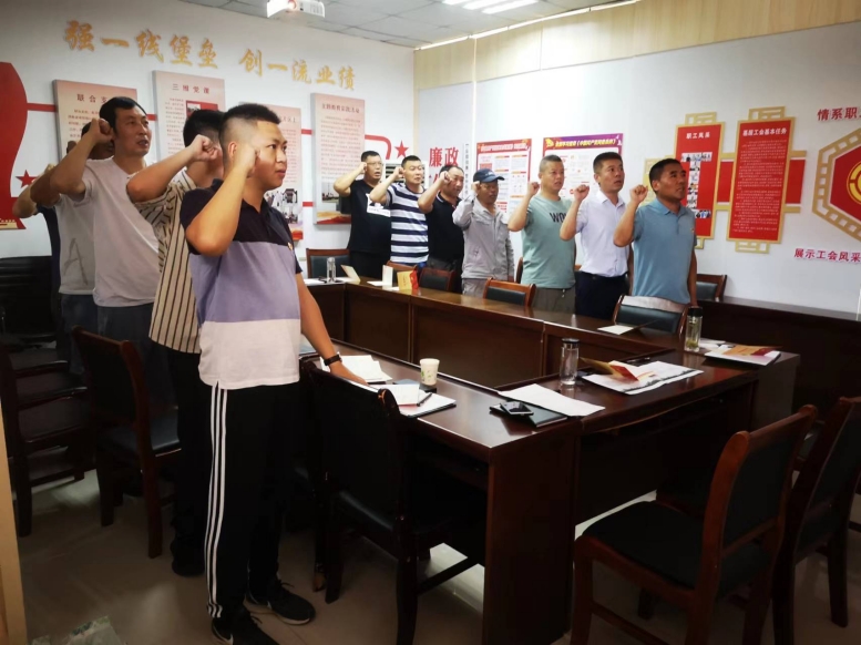 會上,全體黨員同志重溫了入黨誓詞,警醒大家不忘初心、牢記使命。宵洋公司經(jīng)理靳國祥同志以《爭做新時代廉潔從政的表率》為題,從三個方面就充分認清形勢保持清醒頭腦、堅決守住底線做到廉潔從政、敢于擔當深入推動工作落實進行了詳細闡述,上了一堂生動的黨課。此外為檢驗黨史學習教育成果,會上組織了黨史知識競賽答題,全體黨員積極參與,營造了濃厚的學習氛。