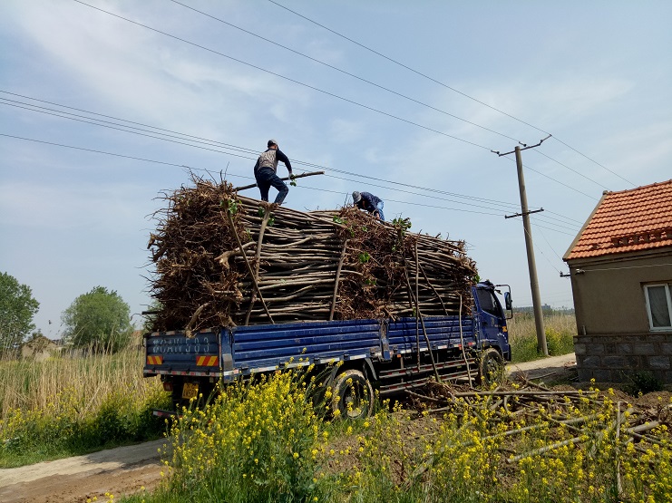 大家下午一點三十出發,每人帶上鐵锨或者鐵楸,前往目的地。全體員工都相互協作,四人一組搬運樹苗,填土栽植,經過兩天的勞動完成了二百三十三畝土地共五百四十棵樹苗的栽植任務。