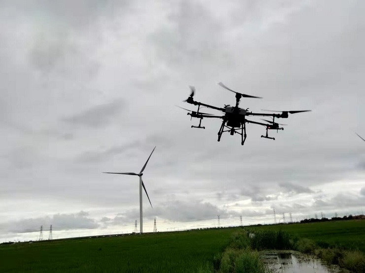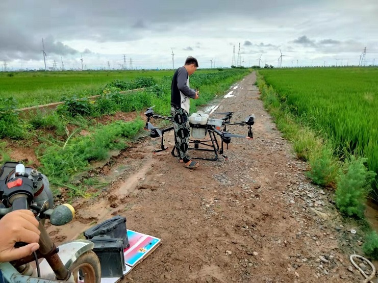 近日,明威公司農(nóng)田水稻進(jìn)入齊穗期,是水稻形成產(chǎn)量的關(guān)鍵時(shí)期,為切實(shí)做好水稻該期病蟲(chóng)害的防治工作,明威公司組織員工在下雨間隙,用一臺(tái)無(wú)人機(jī),對(duì)二灣種植區(qū)的稻田噴施除蟲(chóng)農(nóng)藥——齊穗藥,以增強(qiáng)水稻對(duì)病蟲(chóng)害的防控能力。