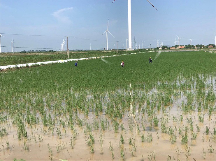 明威公司種植員工經過研究討論,決定采用復合肥與尿酸兌起來施用,有效地促進了水稻的生長。(孟然)