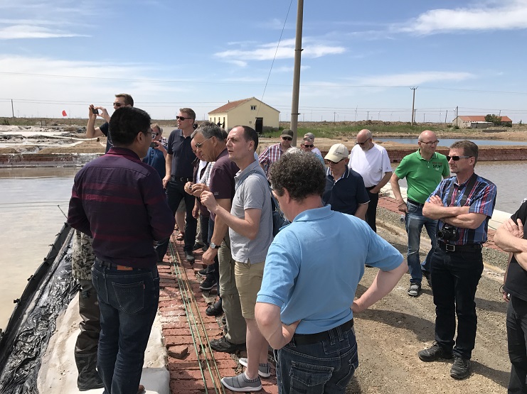 考察團一行先后到淡水養殖基地、日曬制鹽扒鹽現場以及五圖河小麥種植基地進行了實地考察,每到一處,都仔細詢問了生產情況,并詳細記錄了相關數據。在日曬制鹽扒鹽現場,靳主任詳細講解了海水制鹽與礦鹵制鹽生產工藝,以及鹽業生產、銷售、安全等方面政策法規。考察團對我公司取得的成績給予肯定,并希望建立長效交流機制,進一步加強雙方的交流合作。