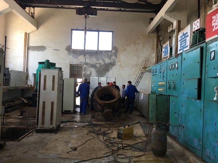 近日高溫高蒸發(fā),全場海水養(yǎng)殖區(qū)海水需求量變大,養(yǎng)殖池塘水位連續(xù)告急,另六圩閘閘站五號(hào)機(jī)泵的水葉老化,出水量變小,導(dǎo)致工作效率降低,不能滿足日常的工作要求。于是副經(jīng)理孫曉波帶領(lǐng)資源管理公司人員配合生產(chǎn)部機(jī)修人員對(duì)六圩閘機(jī)泵進(jìn)行搶修,為了趕在潮水之前爭取把水葉搶修好,大家擼起袖子加油干,有人開行車、有人拿撬棒、有人拿大錘、有人拿特制大扳手、有人拿電焊槍等,大家齊心協(xié)力各有分工,終于完成吊泵和水葉拆卸、安裝等,現(xiàn)場出現(xiàn)一片繁忙的景象。為能夠早日修好機(jī)泵,保證正常供水,十余人起早貪黑在六圩閘站的大機(jī)房努力搶修著。