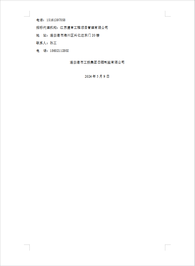 2024年連云港市工投集團日曬制鹽公司土工布采購項目招標公告