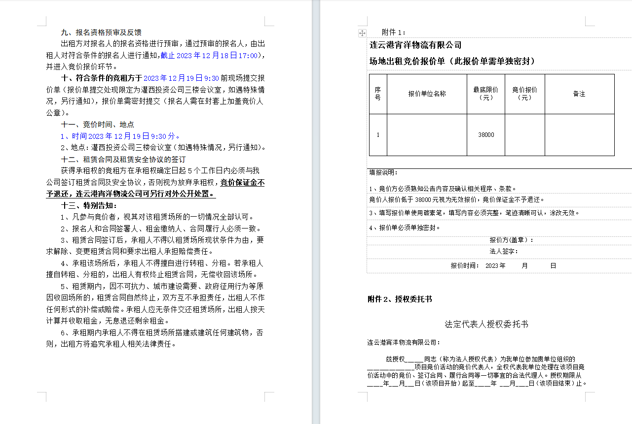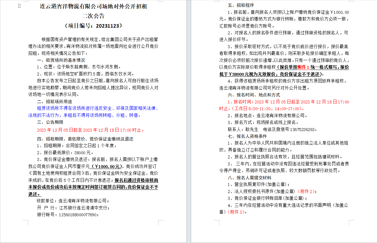 連云港宵洋物流有限公司場地對外公開招租二次公告