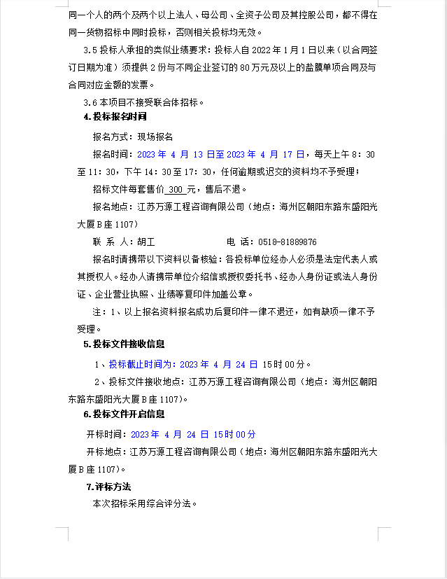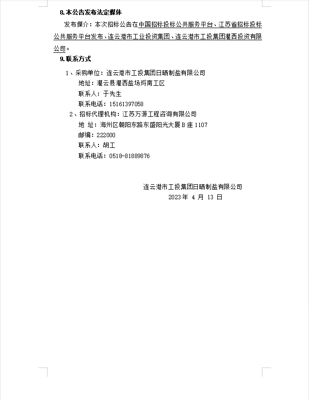 連云港市工投集團日曬制鹽有限公司鹽膜招標公告(二次)