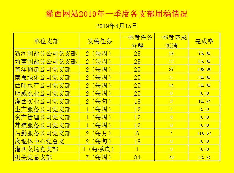 灌西網(wǎng)站2019年一季度各支部用稿情況