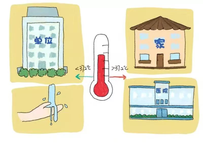 進(jìn)入辦公樓前自覺(jué)接受體溫檢測(cè),體溫正常可入樓工作,并到衛(wèi)生間洗手。若體溫超過(guò)37.2℃,請(qǐng)勿入樓工作,并回家觀察休息,必要時(shí)到醫(yī)院就診。