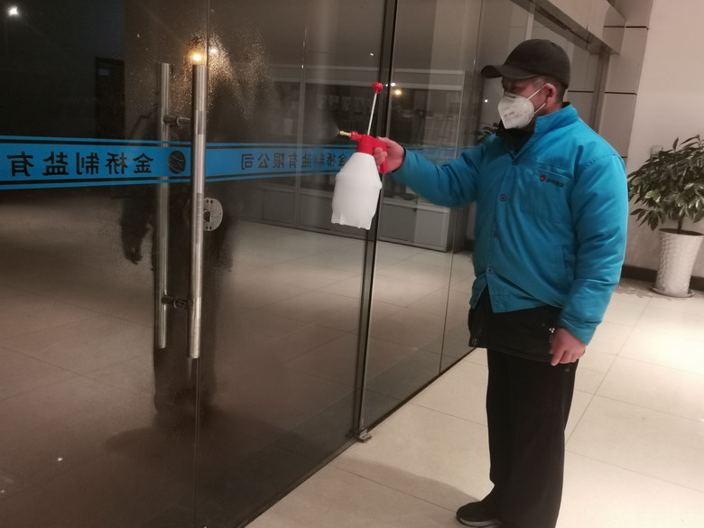強化工作落實。按照疫情防控需要,采購口罩、酒精、噴壺、洗手液、消毒液、一次性手套、體溫測量儀等防控物品,發放給春節值班人員,要求加班員工和外來人員必須佩戴口罩,經測量后體溫正常方可進廠;安排值班人員對辦公樓出入口、打卡室、外來車輛按要求進行消毒,要求對公司通勤車每天按照要求進行必要的消毒,保持員工上下班期間的衛生安全。