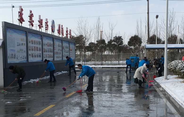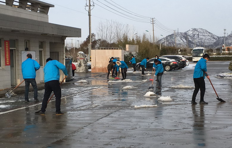 1月31日上午,我公司組織黨團志愿服務(wù)隊開展義務(wù)奉獻(xiàn)活動,清除廠區(qū)道路積雪。經(jīng)過近2小時的奮戰(zhàn),將公司的入口、主干道等處的積雪全部鏟除,為車輛、員工和來訪客人出入開辟了一條安全整潔的道路。(金宣)