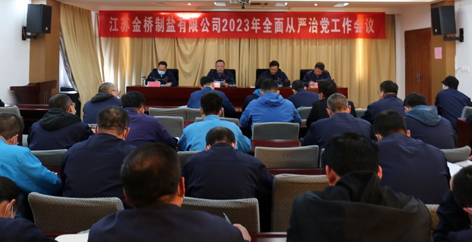 田磊提出,今年公司全面從嚴治黨工作的指導思想和總體思路是:堅決貫徹落實新時代全面從嚴治黨戰略方針,以“學習貫徹習近平新時代中國特色社會主義思想”主題教育為主線,結合集團“解放思想強引領、提質增效創佳績”黨內主題教育實踐活動,大力開展“強企勇擔當、領航爭一流”主題教育活動,實施“五提升”行動,強基固本、凝心鑄魂,在服務公司高質量發展大局上發揮更大作用,為促進一流海食鹽生產企業建設提供堅強政治保證、組織保證、隊伍保證和人才保證。重點做好以下五個方面工作:一是提升政治覺悟、永葆政治本色;二是提升思想覺悟,打牢思想根基;三是提升組織質效,激發干事激情;四是提升廉政能力,保證風清氣正;五是提升群團活力,營造和諧氛圍。