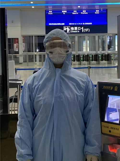 測量體溫看似輕松,但是對測溫槍反反復復的抬起放下,經常累得胳臂酸疼。除了做好體溫檢測工作,每天還要回答成百上千名乘客的問題,維持秩序??此坪唵蔚脑捳Z、簡單的動作,但每天一個班次結束后,幾乎都是喉嚨嘶啞,她胳膊酸痛。因為工作的需要,幾乎每天一直都是站著工作,到家里腿都很僵硬。