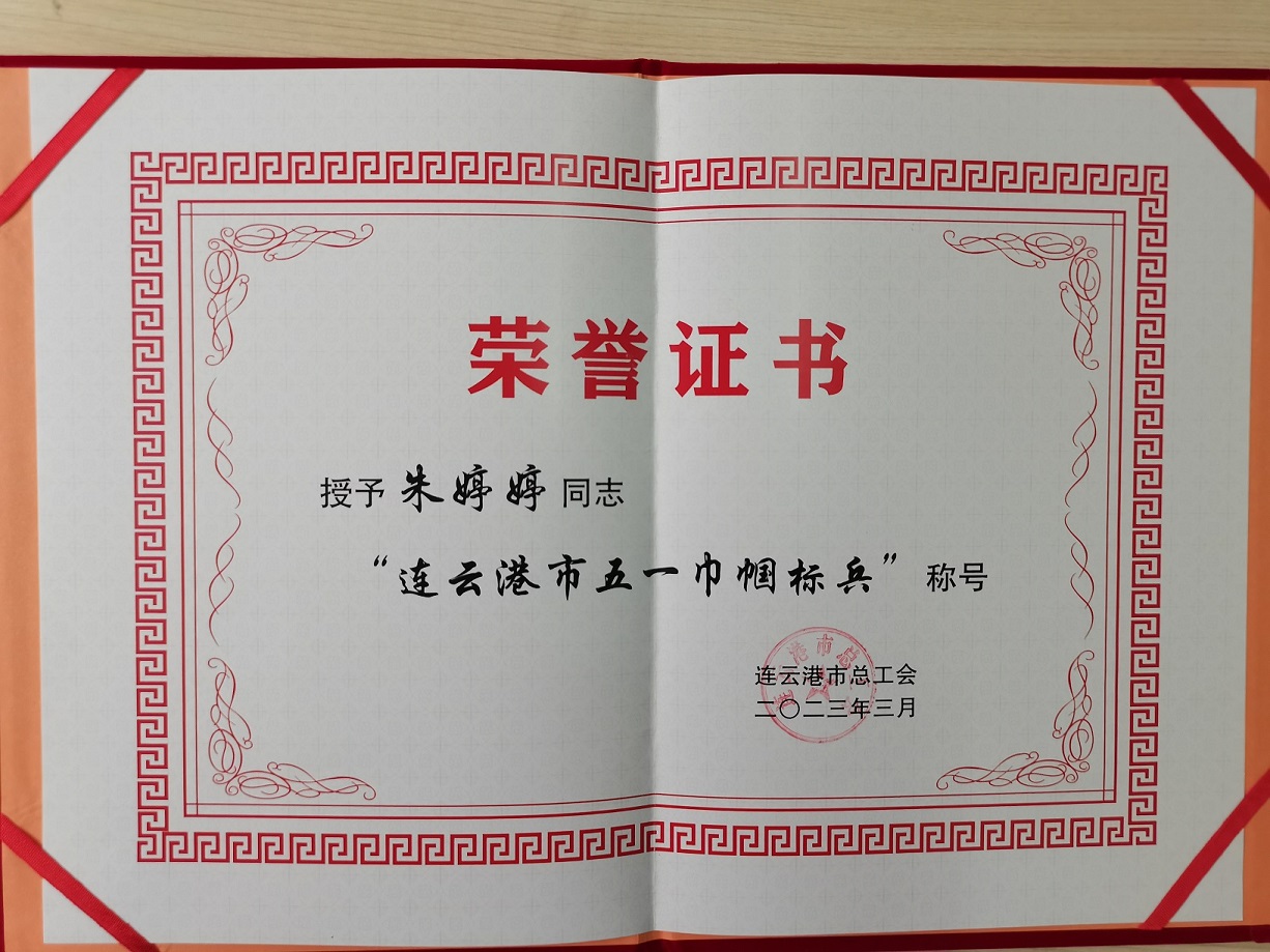 五一勞動(dòng)節(jié)來(lái)臨之際,連云港市總工會(huì)下發(fā)獎(jiǎng)勵(lì)通知,授予格斯達(dá)擔(dān)保公司風(fēng)險(xiǎn)部副經(jīng)理朱婷婷“五一巾幗標(biāo)兵”稱號(hào)!