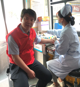 一大早,參加無償獻血的同志來到世紀華聯門口,秩序井然的排在獻血車前,等候醫生進行血壓、脈搏等基礎檢查,并填寫相關表格。經過仔細的體檢篩查,血液符合獻血要求的人,依次進入獻血區,獻上了寶貴的血液。