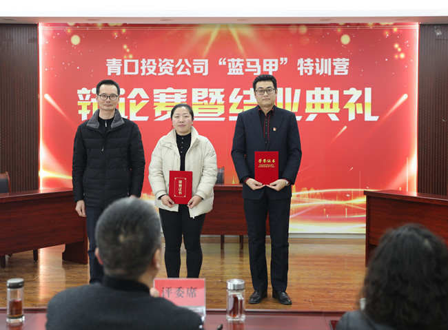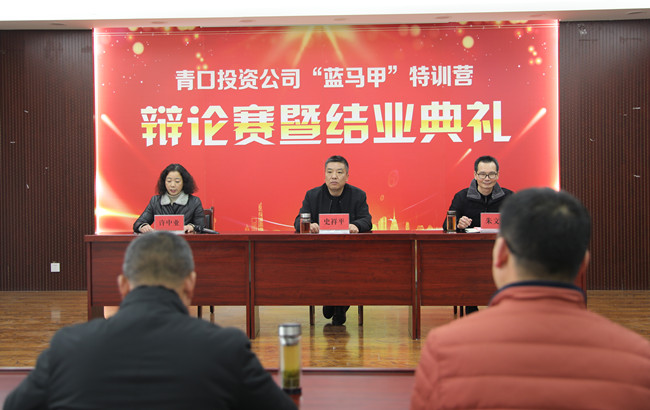 1月15日下午,青口公司“藍馬甲”特訓營辯論賽暨結業典禮圓滿落下帷幕,黨委副書記、總經理史祥平、紀委書記朱文兵出席活動,各基層單位黨政負責人、機關全體管理人員、藍馬甲全體學員參加。