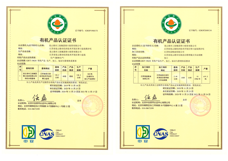 近期,我公司種植的水稻與加工的成品大米順利通過有機認證,獲得有機產品認證證書。