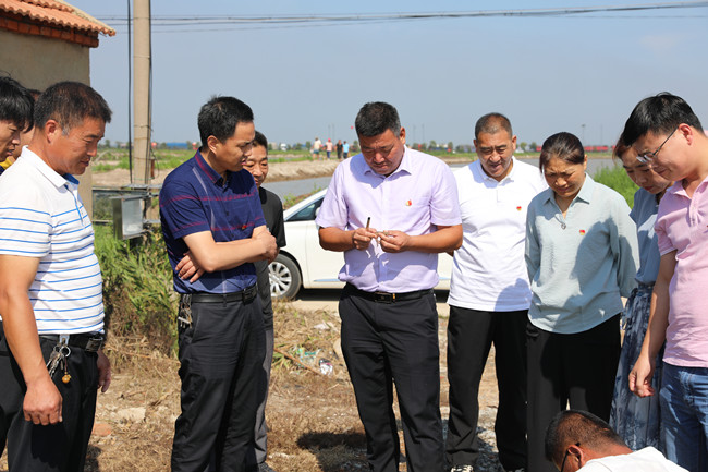 現場觀摩環節,全體與會人員先后來到三洋支部黨員養殖示范崗、大新支部有機稻黨員示范崗,了解兩個“示范崗”的創建特色并聽取了宋海龍、俞正猛在各自崗位上的養殖、種植經驗。