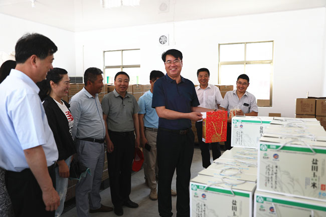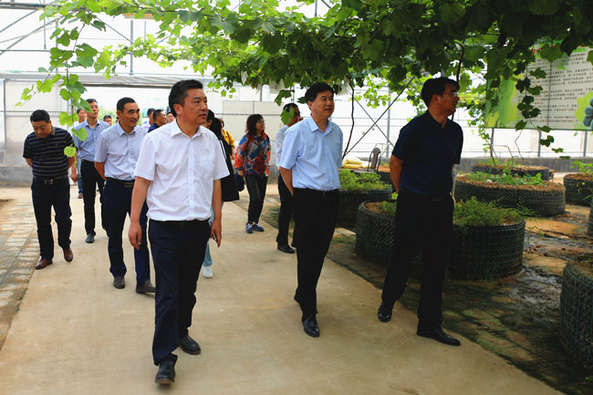王董事長一行先后到玉田農莊、大新農場有機水稻種植基地、養殖池塘、小附河亮化工程現場、鹽田玉米生產車間、展銷中心等地進行了考察調研。