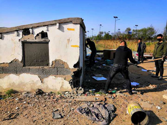 公司領導態度明確,一抓到底全面整治交通環境。摸清形勢,多次召開整治工作專項會議,安排部署整治行動 , 公司領導放棄節假日,現場辦公。三洋、黃沙、大新作為主要牽頭單位,主動扛起責任,挑起擔子,從泰祥公司抽調人力,大家齊心協力。按照時間節點,倒排工期,掛圖作戰,針對現場工作內容,制定 “三步工作法”。一是深入塘頭養殖戶面對面交流,講明利害關系,做通群眾思想工作,確保整治行動順利進行;二 是 制定好拆除先后順序,調配需要的挖掘機、運輸車輛等硬件設施,確保拆遷過程快速有力;三 是 對于已拆除的看護房,及時清理房屋碎石塊,筑牢地基,安排重建。