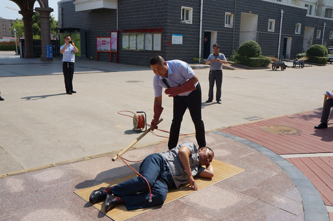 ? ? ? ? ?本次演練模擬一名物業維修人員施工不慎碰到裸露的電線,導致觸電倒地。在演練現場,專業電工、醫護人員先向觀摩人員詳細講解了觸電急救、人工呼吸及胸外心臟擠壓等救援理論知識,并進行施救演示。經過 20多分鐘的演練,順利完成了演練任務。演練結束后,安全技術部負責人對演練情況進行綜合點評,并對泰祥員工安全知識進行培訓,泰祥公司現場發放了安全用電小常識等宣傳材料。通過此次演練使員工對觸電事故的應急救援步驟和方法有了更深的認識,進一步提高職工觸電急救的能力,有效地提高了職工防范安全風險的意識。