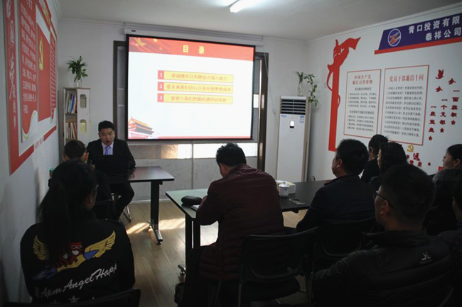 11月20日下午,公司青年宣講隊走進基層第二站一行七人來到泰祥公司,為30余名黨員和職工宣講。