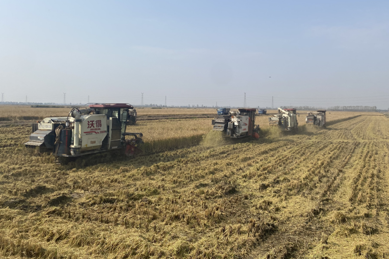 雨后初晴,大新農場搶抓晴好天時,科學統籌,減損提速,近20臺收割機“盡銳出戰”,紛紛下田搶收水稻,切實保障機收作業不停歇,搶收顆粒歸倉。 (王璐)