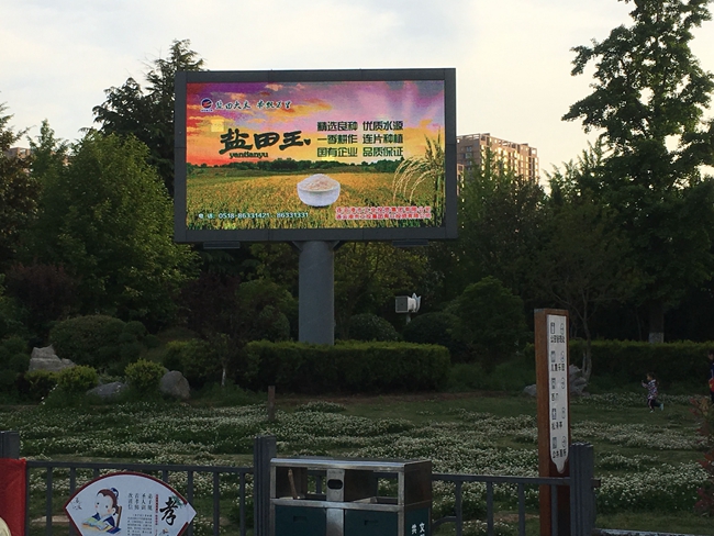近日,米業營銷中心為了做好鹽田玉大米的品牌宣傳,在蒼梧綠園電子屏投放宣傳圖片。(劉楊)